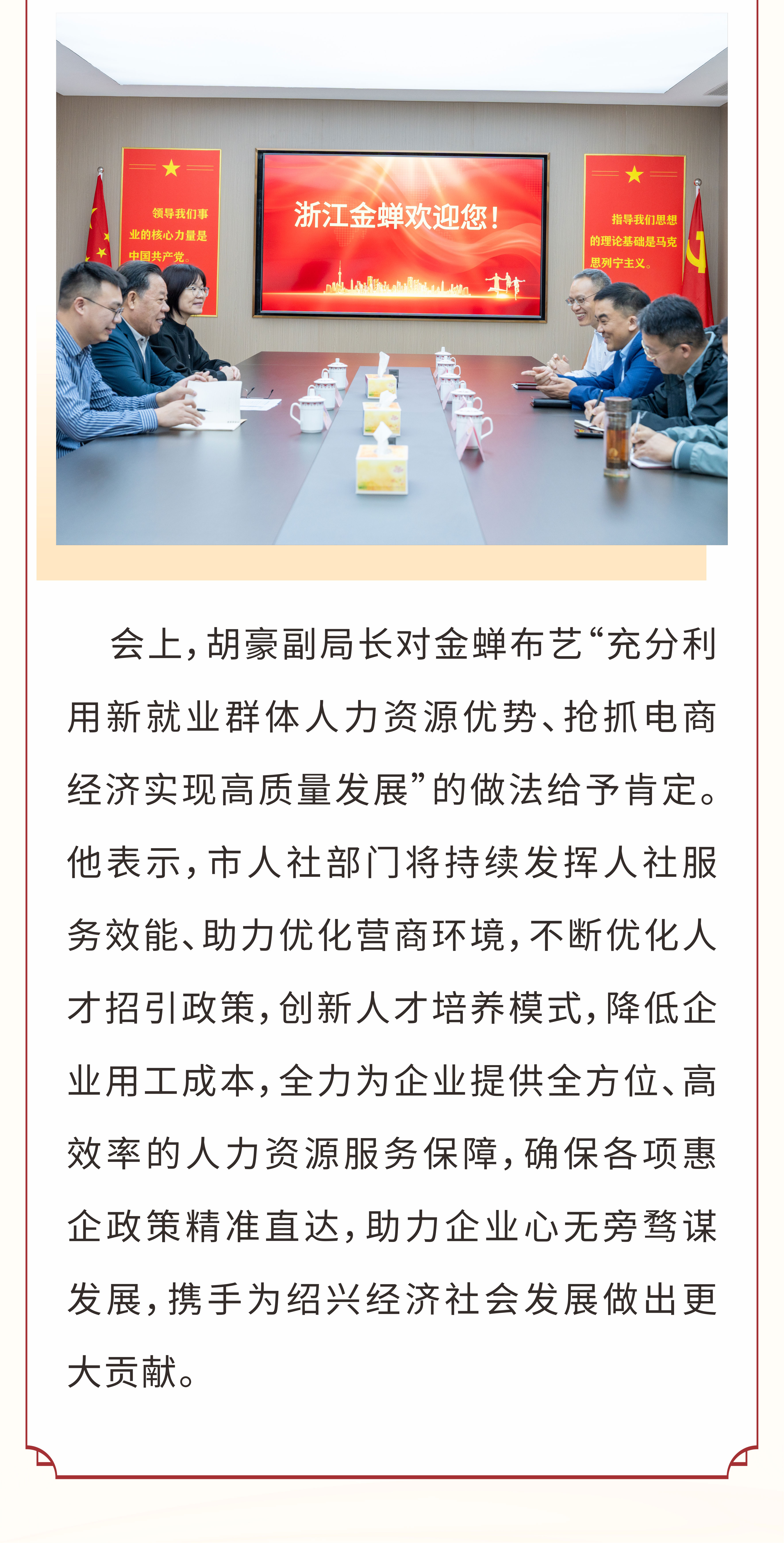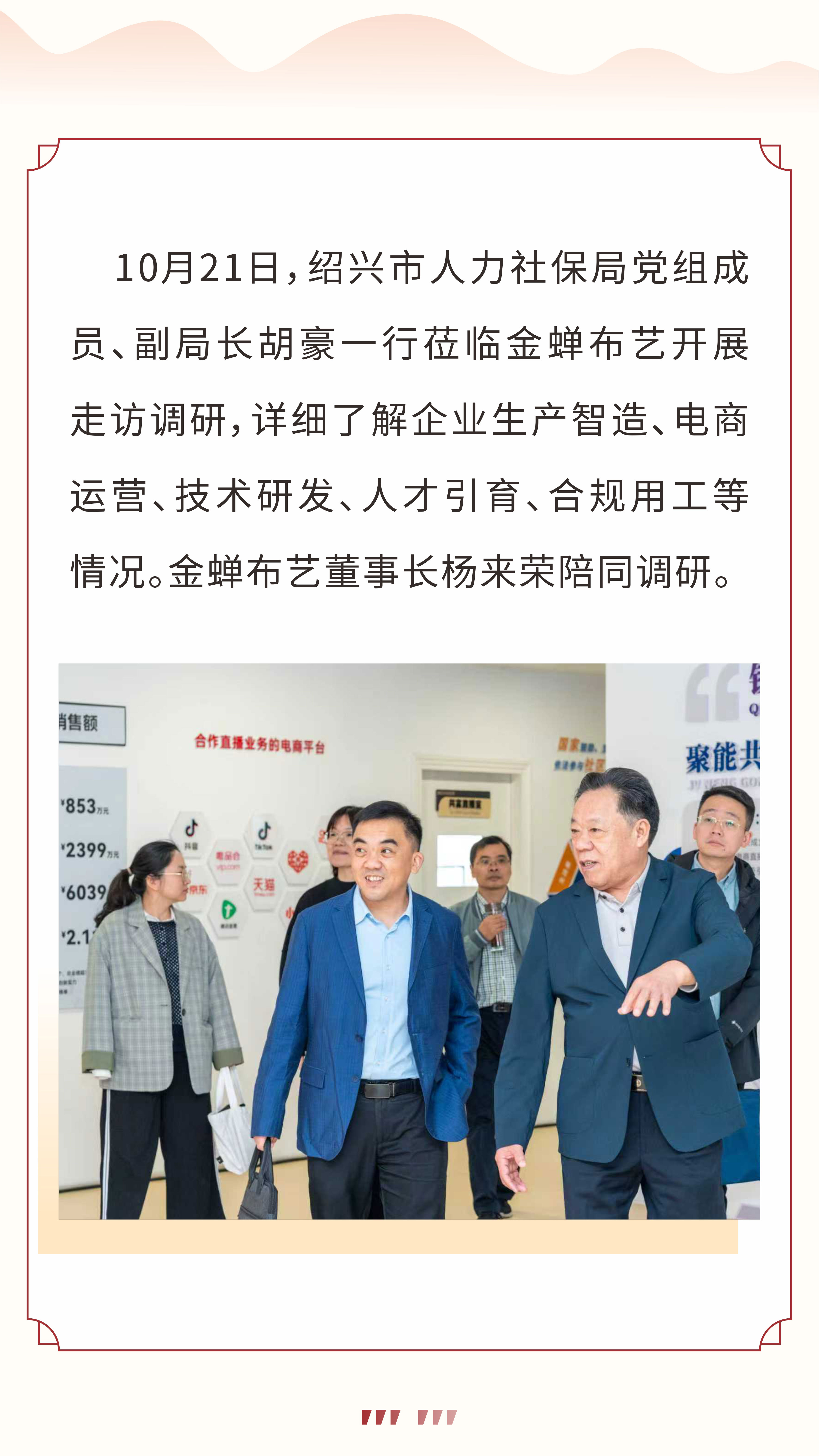 - 【JINCHAN金蟬窗簾】紹興市人力社保局黨組成員、副局長(zhǎng)胡豪一行蒞臨金蟬布藝調(diào)研指導(dǎo) 2025-10-22